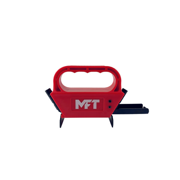 MFT System for skjult montasje er beregnet for montering av vanlig trykkimpregnert-/ varmebehandlet terrassevirke, Sibirisk lerk mfl. Verktøyet klemmes fast over bærende bjelke, en skrue plasseres i hvert monteringshull. Montasjen gjøres med det spesial tilpassede TX15 bitset for at korrekt monteringsdybe oppnås. Ved skjøting av terrassebord skal en ekstra lekt monteres på bjelken, dette er for at terrasseskruen ikke skal monteres for nært endetreet. Grepområde 110 - 155mm. 1 st TX15 spesialbits og distansemål 3,0/4,0/5,0 eller 6,0mm medfølger hver forpakning.