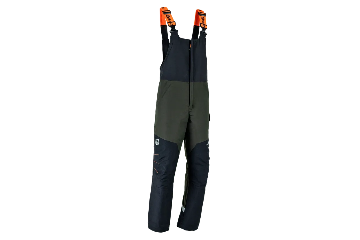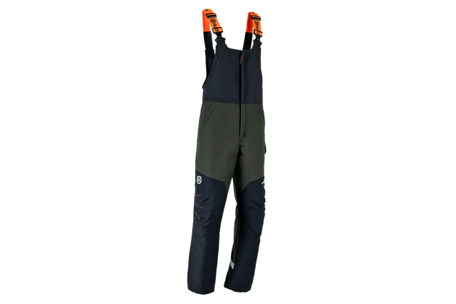 Motorsagbukse med frontstykke og bukseseler til skogsarbeid