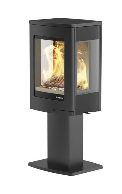 Nordpeis Uno er en liten vedovn med klassisk, moderne skandinavisk utseende. Uno 1 har glass på tre sider slik at du får mye innsyn til flammene fra flere sider av rommet. Ovnsdøren har et automatisk låsesystem som øker både sikkerhet og komfort. Peisovnens størrelse gjør den spesielt egnet for små rom, hvor den kan plasseres både i hjørnet, på rettvegg og fritt i rommet. Luftspyling av glassene og et lyst brennkammer gir et ekstra delikat flammebilde. Vedovnen har mulighet for ekstern luftstilførsel som bør benyttes i velisolerte, tette boliger. Som tilbehør finnes gulvplate i klart glass.