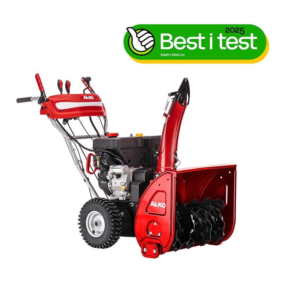 For områder opptil 500 m² Arbeidsbredde 62 cm Kraftig motor (6,2 kW / 302 ccm) Klarer opptil 51 cm snø Kastelengde 10-15 m avhengig av snøens beskaffenhet LED-panel for optimal arbeidslys Sikker fremdrift med grovmønstret dekk 6 gir forover + 2 gir bakover Varme i håndtakene