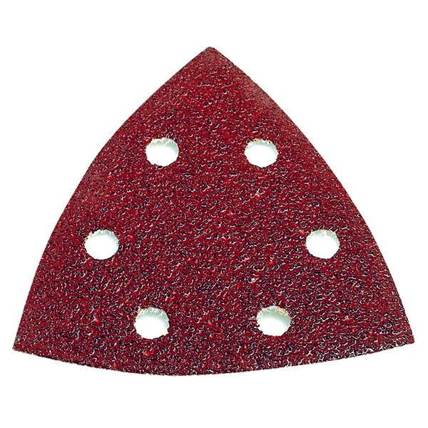 Meget slitesterkt slipepapir "Delta-utførelse" (ideell for bruk i hjørner) Utstyrt med praktisk borrelåsfeste for enklere papirbytte Perforert med hull for effektivt støvavsug