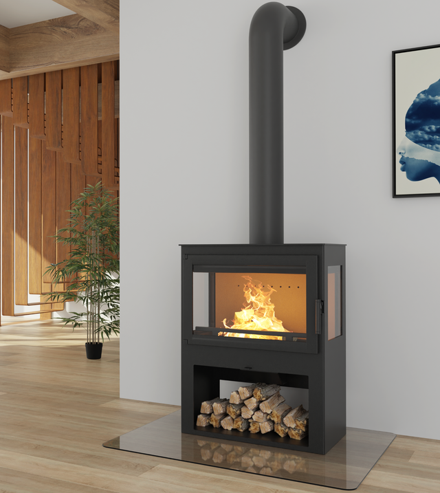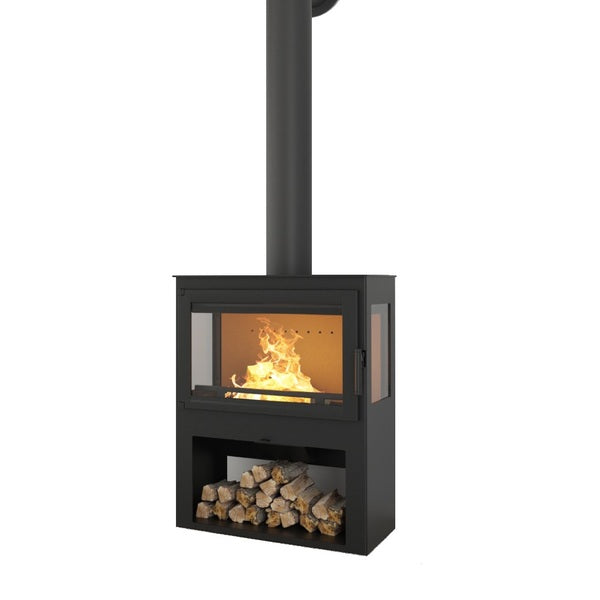 • Integrert vedstativ gir praktisk oppbevaring og helhetlig design