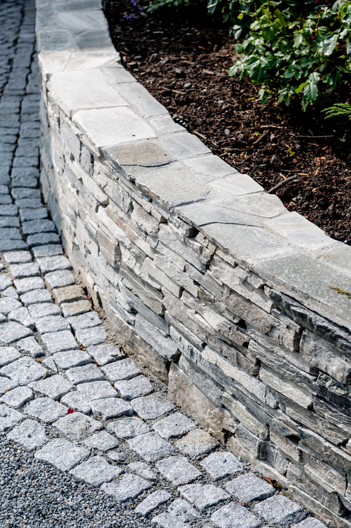 Med skifer tørrmur så kan du bygge en solid grunnmur i stein som varer evig og tåler klimaforandringer med ekstreme temperaturer. Vær kreativ og omkrans blomsterbedet med naturstein eller få en helt unik peis i tørrmur.